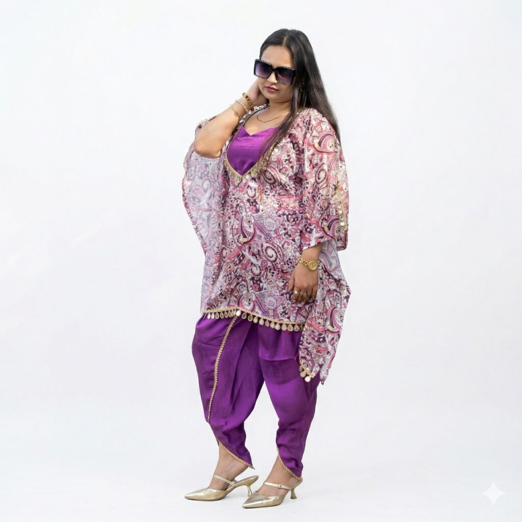 Purple Mirror Lace Co-ord Set with Dhoti Pant (3-Piece Set)